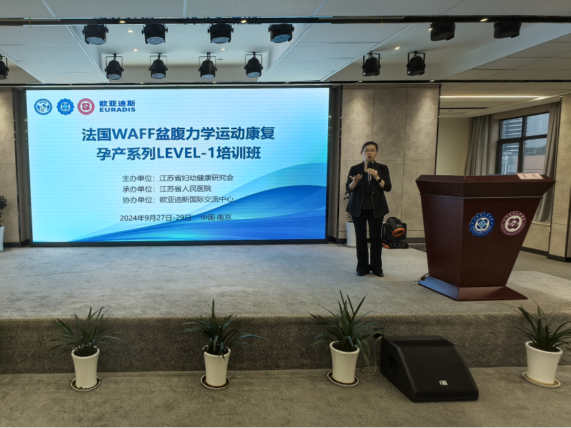 葛环主任对从全国各地赶来参加WAFF课程班的老师们表示热烈的欢迎和衷心的感谢。她提到,江苏省妇幼保健院是全国中法WAFF孕产运动康复项目临床培训中心之一,承担着WAFF运动康复的推广和培训任务,她希望在座学员能够通过本次课程学有所获,并将所学应用到临床工作中。最后,她预祝本次课程班圆满成功! 【培训班】 以下为精彩的课程瞬间: 《WAFF运动康复及发展历程》 -法国欧亚迪斯国际交流中心 刘萍华